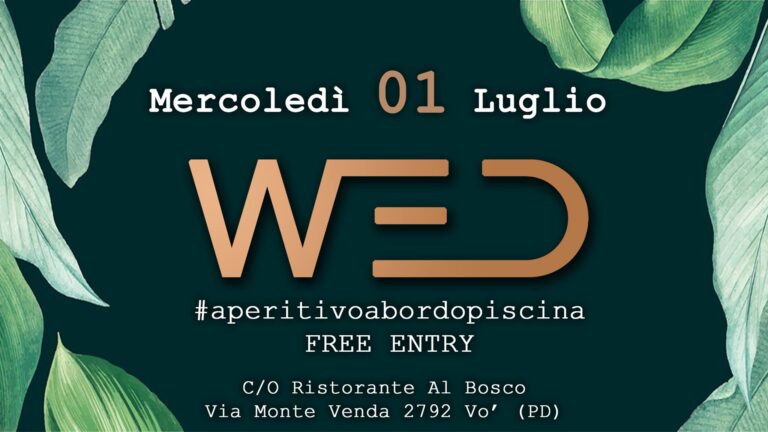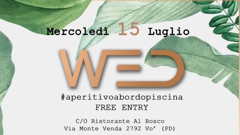 Mercoledì 15 Luglio ritorna l’appuntamento con WED, l’aperitivo si svolgerà sempre nella splendida cornice del parco con piscina del ristorante Al Bosco di Boccon di Vo’ (PD). UNA LOCATION UNICAMusica,