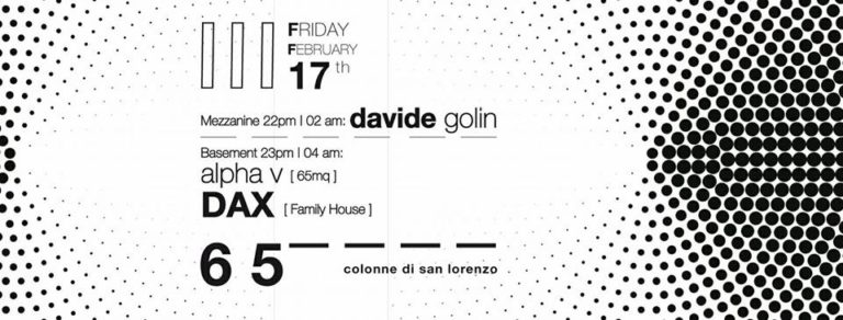 17.02.2017 65mq | DAX DJ | ALPHA V | DAVIDE GOLIN – Colonne San Lorenzo – Milano