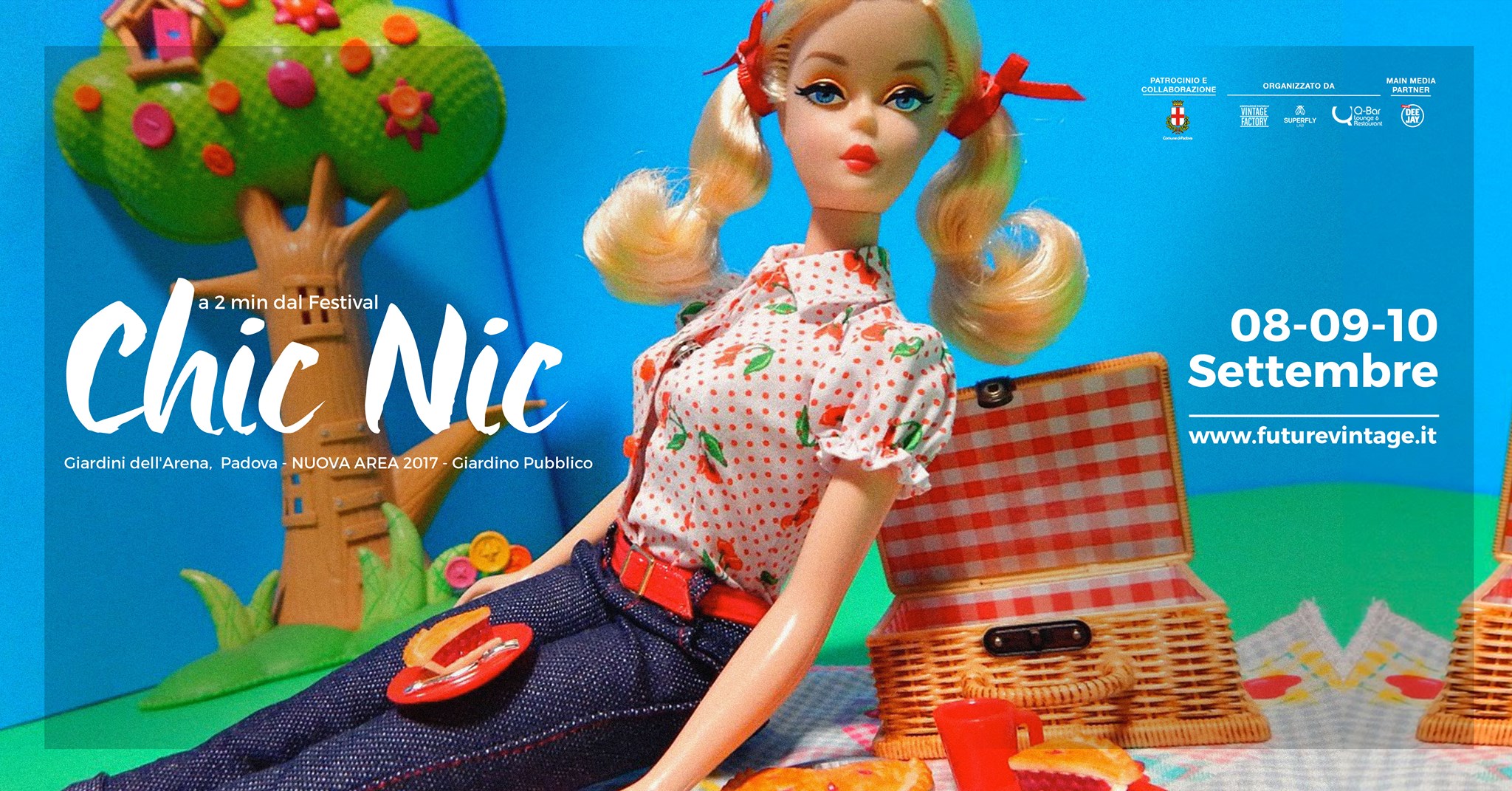 Torna Chic Nic, l’anima ufficiale del Fuori Festival, che per l’edizione 2017 in esclusiva occuperà l’area verde dei Giardini dell’Arena, nel centro storico della città di Padova, con ingresso da via Porciglia e uscita in Corso del Popolo, a soli 2 minuti dal Future Vintage Festival (Centro Altinate San Gaetano).