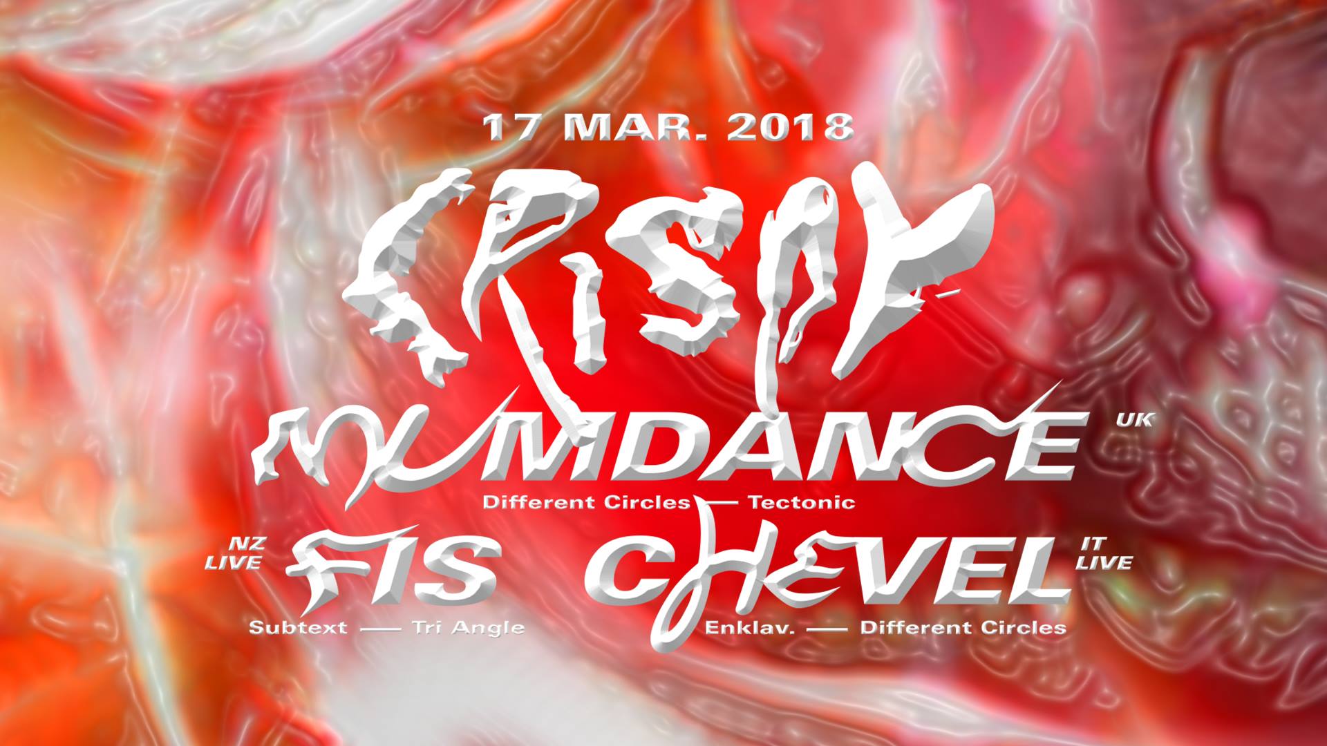 Il percorso di Crispy nel panorama musicale hi-tech culmina al terzo appuntamento della stagione, il cui protagonista è Mumdance. Grime, hardcore e sound design sperimentale sono gli inneschi di uno stile che ha influenzato lo UK sound ben oltre l’underground, come testimoniano i suoi lavori per brand come Nike e Roland. Tra i suoi più frequenti collaboratori in studio troviamo Pinch, Novelist e Riko Dan, mentre il suo show settimanale su Rinse FM l’ha visto suonare back to back con artisti come DJ Stingray, Regis e Lee Gamble. Ma prima saremo testimoni delle esplorazioni soniche di FIS (Forever In Search). In una ricerca instancabile di nuove grammatiche ritmiche, attraverso release che spaziano dalla Subtext alla Tri Angle, ha reso la sua musica un ecosistema pulsante in cui convivono astrazioni dark ambient e inquietudini drum’n’bass. Il preludio della serata è affidato a Chevel, che presenta il suo nuovo album di prossima uscita sulla Different Circles di Mumdance e Logos. “Always Yours” vedrà il weightless sound, marchio di fabbrica della label, trovare una nuova espressione nelle dinamiche house e techno tipiche del producer trevigiano.