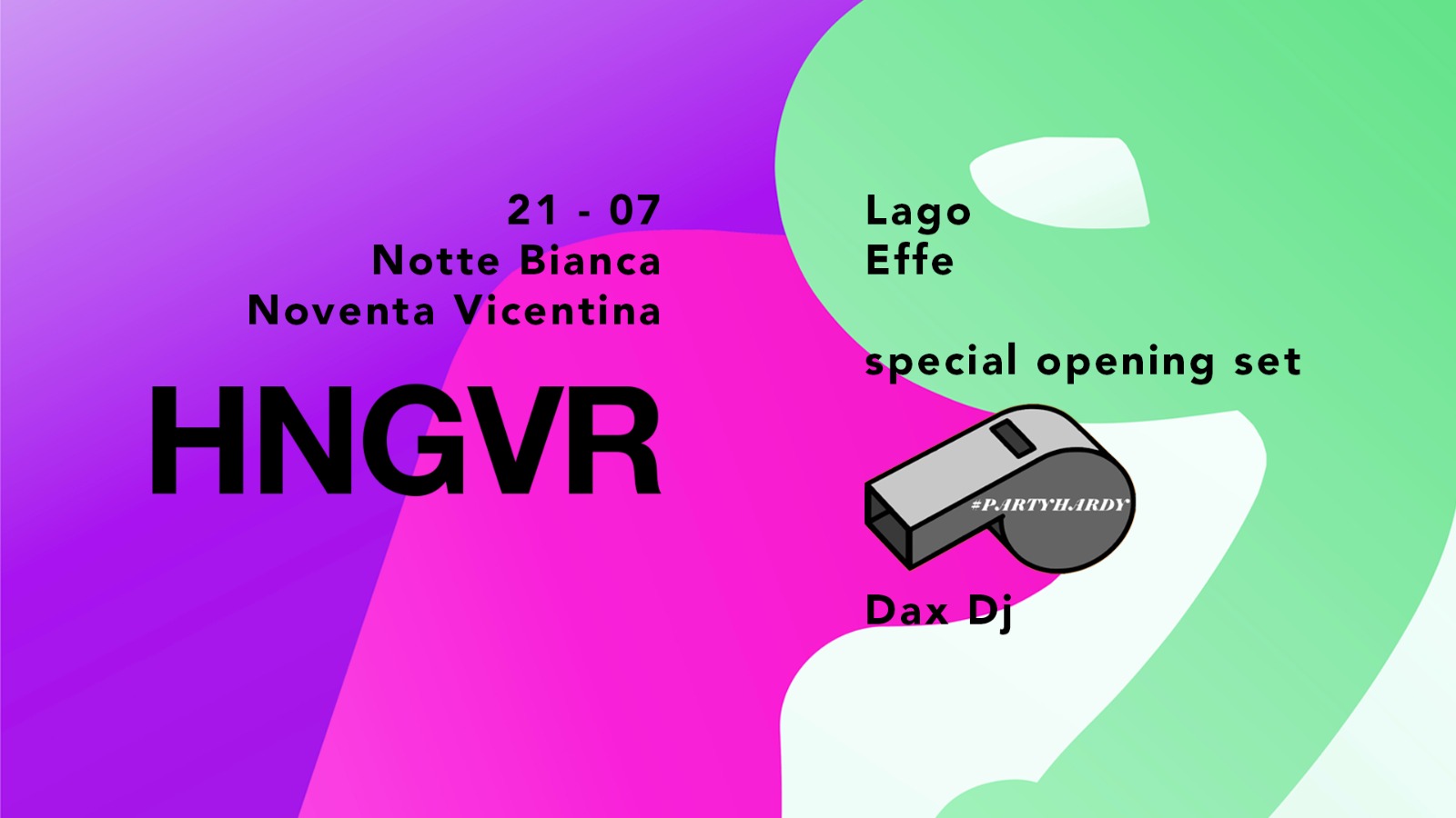 HNGVR si muove per andare a scaldare le vie di Noventa nel vivace ed animato contesto della Notte Bianca! Un lunga serata che parte dall’aperitivo con le sonorità disco-funky di DAX DJ e gli amici di PARTYHARDY, per arrivare fino a tarda sera con il fiesta rhythm di HNGVR!