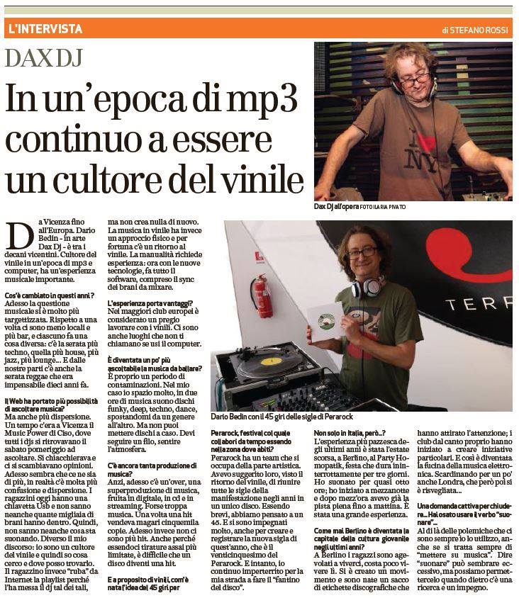 Da Vicenza fino all’Europa. Dario Bedin – In arte Dax DJ – è tra i decani vicentini. Cultore del vinile in un’epoca di mp3 e computer, ha un’esperienza musicale importante.