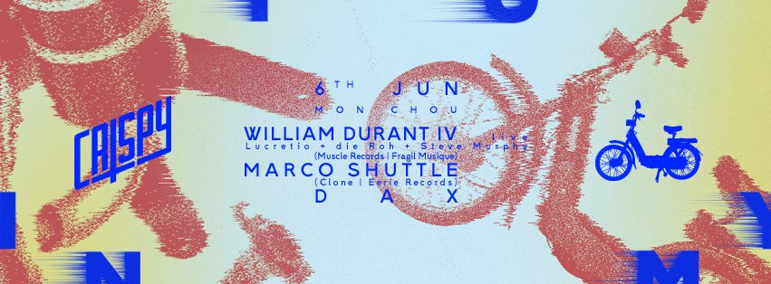 MON CHOU Friday 6th June 2014 WILLIAM DURANT IV live Lucretio + die Roh + Steve Murphy (Muscle Records | Fragil Musique) MARCO SHUTTLE (Clone | Eerie Records) www.soundcloud.com/marco_shuttle DAX www.soundcloud.com/familyhouse Facebook Event c/o Crispy