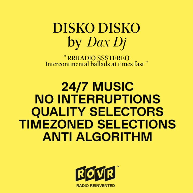 🎧 https://rovr.live/show/ft5lnv3efe3266kccdyipano DISKO DISKO Gu Mascio invited me to compile some music for ROVR live. A new-generation music discovery platform: 24/7 music, no interruptions, quality selectors, timezoned selections, anti-algorithm. Tune