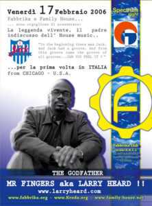 [20.02.2006 20:05 | dax] LARRY HEARD aka MR. FINGERS è stato fenomenale: davvero è raro ascoltare sound così al giorno d’oggi! Detroit, Deep, Disco miscelate sapientemente per creare una atmosfera unica