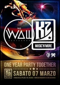 Facebook Event Sabato 7 Marzo 2015 K2 Music Place & The Wall Skatekrap present: “1 YEAR K2 / THE WALL” Party Together Per la prima volta in assoluto, il K2 e il