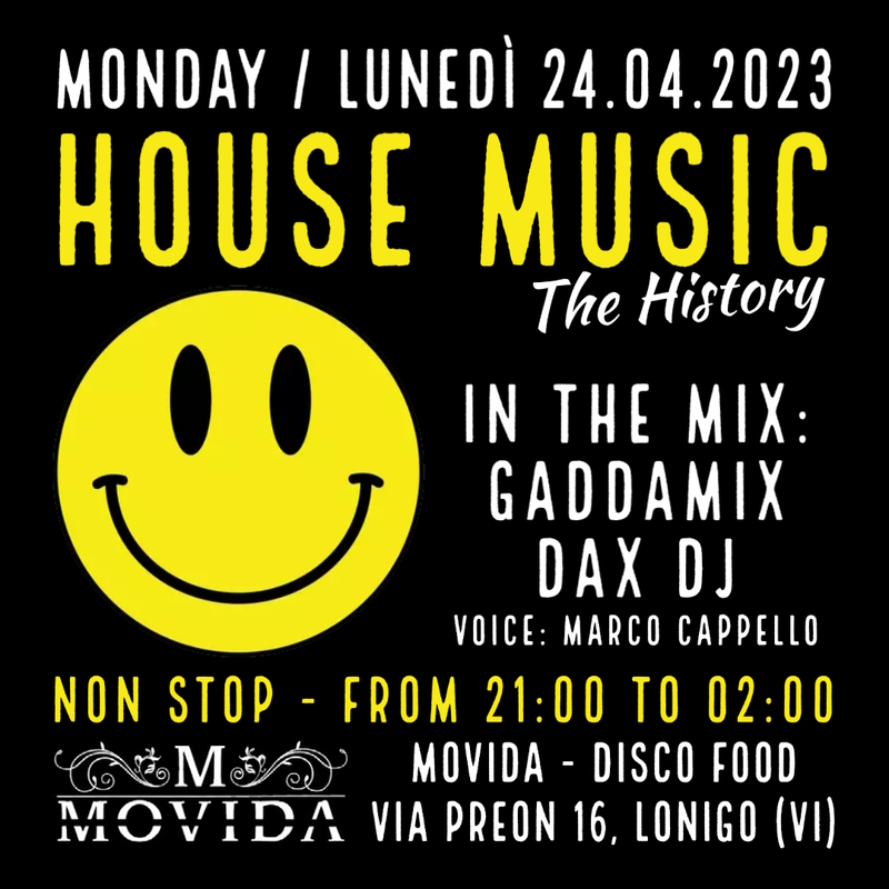 Monday / Lunedì 24.04.2023 HOUSE MUSIC “The history”
