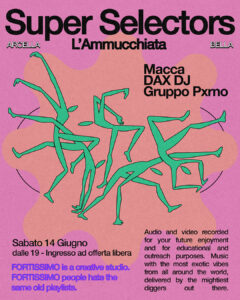 Sabato 14.06.2025 dalle 19 – Ingresso ad offerta libera Super Selectors L’Ammucchiata Macca DAX DJ Gruppo Pxrno c/o Arcella Bella Parco Milcovich 35132 – Padova https://www.instagram.com/arcellabella/