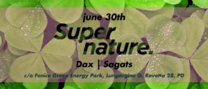 Date / Sabato, 30 Giugno 2018 17:00 – 23:00 Line-up / Sagats Dax DJ Supernature. Natura | Musica | Vibrazioni | Energia positiva | Condivisione A due passi dal centro, un