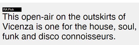29.07.2018 SAVE THE DATE ! Line-up / Jamie 3:26 Daniel Wang Dax DJ RA Pick 2017 This open-air on the outskirts of Vicenza is one for the house, soul, funk