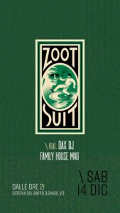 La formula per Zoot Suit Unconventional Records Club EP.02 Vi aspettiamo sabato 14 dicembre, presso @osteria_del_baffo_ Dalle 21.00 free vinyl dalle 22.00 Dax DJ c/o Osteria Del Baffo Piazza Garibaldi,