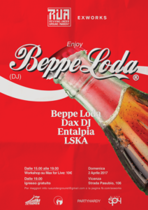 Domenica | Sunday, April 2 at 7 PM – 1 AM BEPPE LODA djset — TYPHOON Percussionista, compositore, produttore e assistente di studio registrazione Beppe Loda è un personaggio eclettico