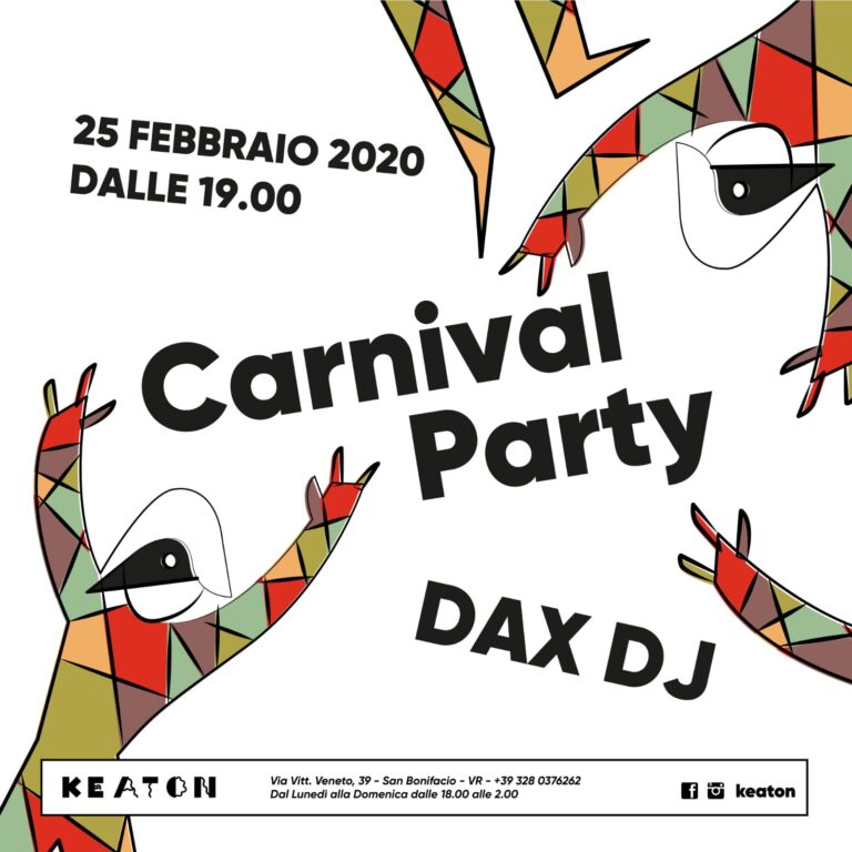 EVENTO ANNULLATO CAUSA EMERGENZA SANITARIA https://www.regione.veneto.it/ Martedì 25 Febbraio 2020dalle ore 19.00 DAX DJ .. good music, good drink .. Facebook Event Keaton – Via Vittorio Veneto, 39San Bonifacio, 37047