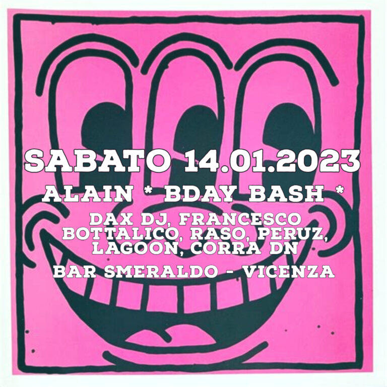 Sabato 14.01.2023 Alain * BDAY BASH * Dax DJ Francesco Bottalico Raso Peruz Corra Dn Bar Smeraldo – Vicenza