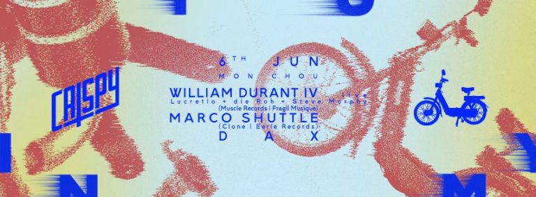 MON CHOU Friday 6th June 2014 WILLIAM DURANT IV live Lucretio + die Roh + Steve Murphy (Muscle Records | Fragil Musique) MARCO SHUTTLE (Clone | Eerie Records) www.soundcloud.com/marco_shuttle DAX www.soundcloud.com/familyhouse Facebook